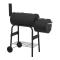 - barbecue fumoir avec une chambre de cuisson principale et une boîte à feu latérale