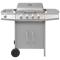 Barbecue à gaz 4 + 1 zone de cuisson Argenté Ce barbecue à gaz est dotée de 4 grandes dans les zones de cuissonet 1 zone de cuisson latérale dans les zones de cuisson et est idéal pour créer une fête en plein air pour votre famille et vos amis. Il vous donnera une expérience de cuisson en plein air magnifique et transformera efficacement votre cour arrière en une seconde cuisine ! Le gril à gaz dispose d'un design élégant et fonctionnel. Il a une grande surface de cuisson et une hotte robuste avec un thermomètre intégré qui affiche avec précision la température de cuisson. Une table d'appoint offre un espace de travail supplémentaire pour faire des sauces ou vos plats favoris. Un récipient d'égouttage à graisse amovible est également inclus et est facile à nettoyer. Fabriqué en matériaux résistants, le gril est très durable. L'armoire dessous fournit un grand espace pour ranger les accessoires de cuisine et les ustensiles. Grâce aux 2 roulettes robustes, le gril est facile à déplacer. La livraison comprend également une housse de barbecue pour protéger le gril contre la pluie et la poussière. Pour connecter le barbecue à la bouteille à gaz, un tuyau de gaz et un régulateur de pression approprié sont requis, mais ils ne sont pas inclus dans la livraison. Pour usage uniquement à l'extérieur. Lire les instructions avant d'utiliser l'appareil. AVERTISSEMENT: les pièces accessibles peuvent être très chaudes. Garder les jeunes enfants à distance.AVERTISSEMENT ! Ne pas utiliser à l'intérieur ! AVERTISSEMENT ! Ce barbecue devient très chaud. Ne le déplacez pas pendant son utilisation. Tenez les enfants et les animaux de compagnie éloignés. GPSR