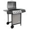 Barbecue gril à gaz avec 4 brûleurs Noir et argentéCe barbecue au gaz est doté de 4 brûleurs et il est idéal pour faire la fête en plein air avec votre famille et vos amis. Profitez d'une expérience de cuisson grisante et grésillante en plein air en transformant votre jardin en une deuxième cuisine ! Le gril à gaz dispose d'un design élégant et fonctionnel. Il a une grande surface de cuisson et une hotte robuste avec un thermomètre intégré qui affiche avec précision la température de cuisson. Les tables latérales offrent un espace de travail supplémentaire pour faire des sauces ou vos plats favoris. Un récipient d'égouttage à graisse amovible est également inclus et est facile à nettoyer. Fabriqué en matériaux résistants, le gril est très durable. L'étagère dessous fournit un grand espace pour ranger les accessoires de cuisine et les ustensiles. Grâce aux 2 roulettes robustes, le gril est facile à déplacer. La livraison comprend également une housse de barbecue pour protéger le gril contre la pluie et la poussière. Pour connecter le barbecue à la bouteille à gaz, un tuyau de gaz et un régulateur de pression approprié sont requis, mais ils ne sont pas inclus dans la livraison. AVERTISSEMENT ! Ne pas utiliser à l'intérieur ! AVERTISSEMENT ! Ce barbecue devient très chaud. Ne le déplacez pas pendant son utilisation. Tenez les enfants et les animaux de compagnie éloignés.