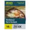 Bas de ligne Rio spécial Nymphe style européen. Longueur totale: 4.30 m ( 3.50 m dégressif de 0.30mm à 0.22mm de couleur marron + 80 cm en 0.178mm bicolore Rose chartreuse terminé par un micro-anneau. L'extrêmité du bas de ligne est terminée par un micro anneau permettant de relier votre pointe de nylon plus ou moins longue et épaisse en fonction des conditions de pêche. Avantage: Votre bas de ligne est bien visible et le changement de pointe est facile. le bas de ligne possède aussi une boucle à sa base pour le raccorder facilement à votre soie. Une seule taille pour ce bas de ligne.