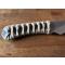 Couteau en D2 avec plaquette en carbone et tressage en paracorde sur le manche.