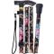 Bâton De Marche Compact Pliable Et Léger Motif Floral Noir Réglable 84-95 cm