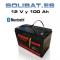 Batterie LiFePo4 12,8 V 100 Ah avec Bluetooth. Réf. : BLF-30 SP Les caractéristiques: Poids : 11 kg. Dimensions : 340 x 175 x 220 mm 12,8 V et 100 Ah, total de 1 280 Wh. Connexion série ou parallèle. Une batterie de moins de 11 kg offre les performances de deux batteries traditionnelles de 60 kg : Gain de poids, de volume, de carburant, etc.