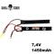 Batterie LiPo 7.4V 1450mAh Duel Code, idéale pour répliques airsoft AEG. Format double stick, connecteur Mini-Tamiya pour une installation facile.