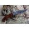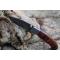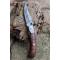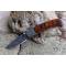Beau Couteau Pliant - Longueur fermé 9.50cm - Longueur ouvert 16cm - Lame acier damas 128 couches - Lame de type drop point - Platines en laiton - Platines guillochées - Ressort guilloché - Plaquettes du manche en rosewood - Mosaic Pins - Mitres en damas - Ouverture d'une main - Linerlock - Fabrication artisanale - Les dessins du damas sont uniques comme une empreinte - Etui cuir