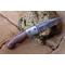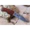 Beau Couteau Pliant - Longueur fermé 10cm - Longueur ouvert 17.5cm - Lame acier damas 128 couches - Lame de type clip point - Mitres en acier damas - Platines en nickel - Ressort guilloché - Plaquettes du manche en bois - Fabrication artisanale - Ouverture d'une main - Les dessins du damas sont uniques comme une empreinte - Système de sécurité linerlock