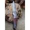 Beau Couteau Damas Lame 128 Couches Manche bois Mitres Damas Fab Artisanale Linerlock