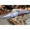 Beau Couteau Pliant - Longueur fermé 10.5cm - Longueur ouvert 18.5cm - Lame acier damas 128 couches - Lame de type clip point - Mitres en acier damas - Platines en nickel - Ressort guilloché - Plaquettes du manche en bois - Fabrication artisanale - Ouverture d'une main - Les dessins du damas sont uniques comme une empreinte - Système de sécurité linerlock