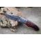 Beau Couteau Pliant - Longueur fermé 10.5cm - Longueur ouvert 18.5cm - Lame acier damas 128 couches - Lame de type clip point - Mitres en acier damas - Platines en nickel - Ressort guilloché - Plaquettes du manche en bois - Fabrication artisanale - Ouverture d'une main - Les dessins du damas sont uniques comme une empreinte - Système de sécurité linerlock