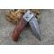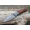 Beau Couteau Pliant - Longueur fermé 10cm - Longueur ouvert 18.5cm - Lame acier damas 128 couches - Lame de type clip point - Mitres en acier damas - Platines en nickel - Ressort guilloché - Plaquettes du manche en bois - Fabrication artisanale - Ouverture d'une main - Les dessins du damas sont uniques comme une empreinte - Système de sécurité linerlock