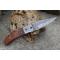 Beau Couteau Damas Lame 128 Couches Manche bois Mitres Damas Fab Artisanale Linerlock