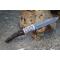 Beau Couteau Damas Lame Clip Point 128 Couches Manche Bélier Mitres Gravures Fab Artisanale