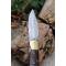 Beau Couteau Damas Lame Drop Point 128 Couches Manche Bélier & Résine Fab Artisanale Linerlock