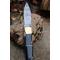 Beau Couteau Damas Lame Drop Point 128 Couches Manche Bélier & Résine Fab Artisanale Linerlock