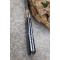 Beau Couteau Pliant - Longueur fermé 11cm - Longueur ouvert 19.5cm - Lame acier damas 128 couches - Lame de type drop point - Platines en nickel - Ressort guilloché - Plaquettes du manche en corne de bélier & résine - Mitres en laiton - Ouverture d'une main - Sécurité Linerlock - Fabrication artisanale - Les dessins du damas sont uniques comme une empreinte - La corne de bélier présente des aspérités naturelles différentes selon l'animal