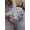 Beau Couteau Damas Lame Drop Point Acier 128 Couches Manche Bois Mitres Aigle Fabrication Artisanale
