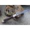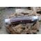 Beau Couteau Pliant - Longueur fermé 10cm - Longueur ouvert 18cm - Lame acier damas 128 couches - Lame de type drop point - Mitres en nickel - Platines en laiton - Ressort guilloché - Plaquettes du manche en bois de cerf - Fabrication artisanale - Ouverture à 2 mains - Les dessins du damas sont uniques comme une empreinte - Système à cran forcé