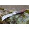 Longueur fermé 10cm - Longueur ouvert 18cm - Platines du manche en nickel - Mitres du manche en nickel - Plaquettes du manche en bois - Lame en damas 128 couches - Lame de type serpette - Les dessins de la lame sont comme une empreinte, ils sont uniques - Fabrication artisanale - Ouverture à 2 mains - Système à cran forcé