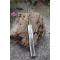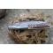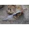 Longueur fermé 11cm - Longueur ouvert 20cm - Platines du manche en laiton - Mitres du manche en damas - Plaquettes du manche en Bois de cerf - Ressort du dos guilloché - Lame en damas 128 couches - Lame de type vendetta - Les dessins de la lame sont comme une empreinte, ils sont uniques - Fabrication artisanale - Ouverture à 2 mains - Système à cran forcé