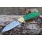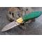 Beau Couteau Pliant - Longueur fermé 11cm - Longueur ouvert 19.5cm - Lame acier damas 128 couches - Lame de type drop point - Mitres en laiton - Platines en acier - Platines guillochées - Ressort guilloché - Plaquettes du manche en bois - Rivets en laiton - Fabrication artisanale - Ouverture d'une main - Sécurité linerlock - Les dessins du damas sont uniques comme une empreinte