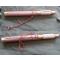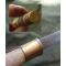 Un beau Dha birman du XIXe ou début XXe siècle. Poignée en galuchat (peau de raie) et baguette de cuivre rouge, mitre en laiton cylindrique. La lame est en très bon état et comporte des éléments de décoration floraux réalisé par inclusion de laiton à la base de la lame, des deux côtés, ce qui rend cette pièce peu courante et esthétiquement attractive. Le fourreau est une reproduction faite en cuir et laiton dans le même style. Seul le cordon est d’origine, mais plus récent que le couteau.