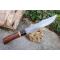 Longueur du manche 13cm - Longueur de la lame 19.5cm - Tranchant de 17cm - Lame en Acier damas 256 couches - Lame de type bowie modifiée harpoon - Manche en bois & résine - Fabrication Artisanale - Les dessins de la lame sont uniques comme une empreinte - Etui cuir - Couteau inspiré du poignard de Legolas