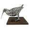 Bécasse en étain sur socle bois, idéale comme décoration pour les périodes de fêtes ou pour le chalet de chasse.