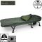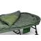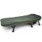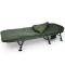 Le bedchair est construit en acier et en aluminium pour le cadre avec un profil 100 % plat. Les pieds sont écartés pour un profil bas et chaque pied est doté d'une section courte pour plus de solidité et de sécurité. Les pieds sont réglables via le mécanisme de pieds Grip-Lok(TM), permettant un réglage facile et sécurisé de la hauteur. Les pieds sont également renforcés avec des tubes doubles, qui ont tous de grands pieds pivotants. Les charnières doubles pliées donnent au lit un profil complètement plat et laissent suffisamment de place pour que le système de couchage se replie de manière plus compacte. Tous les boulons, rondelles et fixations sont en acier inoxydable, ce qui ajoute légèreté et solidité. Enfin, il y a deux poches de rangement latérales pratiques pour un téléphone ou des clés de voiture.