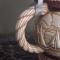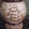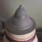 le couvercle en forme de chapeau est en étain et finement ciselé