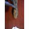 Large Nsapo-Nsapo axe from the Songye people. Head size: 32 x 32 cm. Height: 54.5 cm (straight), 39.5 cm (handle). Weight: 1055 g. Snakeskin. The age of the axe suggests poor stitching due to significant tension in the hide.