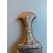 Bon état général pour son âge. Garniture en argent présente une belle patine. Quelques éclats sur la poignée en corne, et traces de rouille visibles sur la lame. La ceinture conserve son décor mais présente des signes d’usure liés au temps.