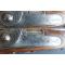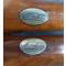 Bois de crosse en beau noyer tigré avec pièce de pouce ovale en argent stylisé d'un Lévrier sans accident mais avec de trés infimes traces de manipulation d'usage externe.(a noté un des deux pistolet a une réparation par collage sur sa boiserie au dessus de la platine voir clichés ,éxemplaire situé en haut sur clichés de présentation).