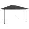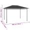 Belvédère 384x281x270 cm Anthracite 180 g/m²Ce gazebo offre un excellent abri et est idéal pour les sports de plein air, les fêtes, les pique-niques ou tout autre événement en plein air. Cet auvent est doté d'une construction en acier solide pour une bonne stabilité. Le toit est en tissu avec revêtement PA, protégeant de la pluie et du soleil brûlant, pour que vous puissiez profiter pleinement des événements en plein air. De plus, cette tente d'extérieur est compacte et facile à ranger. Bon à savoir : Ce produit ne convient pas comme abri voiture.