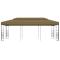 Belvédère 6x3x2,7 m Taupe 180 g/m²Ce chapiteau sera idéal pour tous les événements en plein air, comme les petits réunions, les mariages, les fêtes de barbecue, le camping et ainsi de suite. Vous pouvez également l'installer dans votre cour comme un large et joli parasol de retraite pour votre famille et vos invités. Le cadre est fort et stable grâce à sa construction tout en acier, et l'auvent de toit est fait de 100 % polyester qui a reçu un revêtement PA pour vous protéger des rayons UV nocifs et également de la pluie. Il se fixe facilement au cadre de la tonnelle. Remarque : la tonnelle n'a pas été conçue comme une structure permanente et il n'est pas recommandé de l'utiliser dans des conditions météorologiques extrêmes. Tenez les enfants et les animaux domestiques à l'écart de la zone d'assemblage jusqu'à ce que le travail soit terminé. Certaines pièces peuvent présenter des arêtes vives, portez des gants de protection si nécessaire. Le gazebo doit être positionné et fixé uniquement sur une surface plane et horizontale. N'essayez pas d'assembler le gazebo dans des conditions venteuses ou humides. Ne placez pas votre gazebo dans une zone exposée à un vent excessif. Si vous utilisez des outils électriques ou une échelle, suivez toujours les instructions de sécurité du fabricant pour éviter les blessures. NE PAS utiliser de flammes nues dans le gazebo ou à proximité du pavillon. Les objets chauds tels que les grils récemment utilisés, les chalumeaux, etc. ne doivent pas être entreposés dans le pavillon de jardin. Fixez le gazebo à l'aide des piquets fournis.