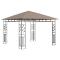 Belvédère avec moustiquaire 3x3x2,73 m Taupe 180 g/m²Si vous cherchez un supplément d'auvent pour vos activités en plein air, ce belvédère de jardin est la paire parfaite pour votre cour, vous permettant de tirer le meilleur parti de votre jardin. Le cadre présente une construction robuste en acier et le rend durable et stable. Le toit ouvrant en tissu vous protège du soleil brûlant, vous aidant à profiter d'un meilleur confort lors de vos activités en plein air. Cette tente, équipée de moustiquaires, vous protège contre les insectes et les moustiques. Vous pouvez donc profiter de vos loisirs en plein air sans dérangement. En outre, ce belvédère peut être installé en peu de temps. Remarque : ce produit ne doit JAMAIS être utilisé par mauvais temps, tel que vent fort, pluie abondante, forte chute de neige, tempête, etc.