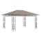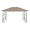 Belvédère avec moustiquaire 4x3x2,73 m Taupe 180 g/m²Si vous cherchez un supplément d'auvent pour vos activités en plein air, ce belvédère de jardin est la paire parfaite pour votre cour, vous permettant de tirer le meilleur parti de votre jardin. Le cadre présente une construction robuste en acier et le rend durable et stable. Le toit ouvrant en tissu vous protège du soleil brûlant, vous aidant à profiter d'un meilleur confort lors de vos activités en plein air. Cette tente, équipée de moustiquaires, vous protège contre les insectes et les moustiques. Vous pouvez donc profiter de vos loisirs en plein air sans dérangement. En outre, ce belvédère peut être installé en peu de temps. Remarque : ce produit ne doit JAMAIS être utilisé par mauvais temps, tel que vent fort, pluie abondante, forte chute de neige, tempête, etc.