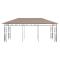 Belvédère avec moustiquaire 6x3x2,73 m Taupe 180 g/m²Si vous cherchez un supplément d'auvent pour vos activités en plein air, ce belvédère de jardin est la paire parfaite pour votre cour, vous permettant de tirer le meilleur parti de votre jardin. Le cadre présente une construction robuste en acier et le rend durable et stable. Le toit ouvrant en tissu vous protège du soleil brûlant, vous aidant à profiter d'un meilleur confort lors de vos activités en plein air. Cette tente, équipée de moustiquaires, vous protège contre les insectes et les moustiques. Vous pouvez donc profiter de vos loisirs en plein air sans dérangement. En outre, ce belvédère peut être installé en peu de temps. Remarque : ce produit ne doit JAMAIS être utilisé par mauvais temps, tel que vent fort, pluie abondante, forte chute de neige, tempête, etc.