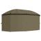 Belvédère avec rideaux 520x349x255 cm Taupe 180 g/m²Ce belvédère de jardin est idéal pour tous les événements en plein air, comme les petites réunions, les mariages, les barbecues, le camping et ainsi de suite. Vous pouvez également l'installer dans votre cour comme un large et joli parasol de repos pour votre famille et vos invités. Cette tente de fête est résistante et durable grâce à son cadre en acier enduit de poudre. Le dessus de protection et les rideaux détachables sont tous deux en tissu de polyester enduit de PA et résistant aux UV, et donc parfaitement adapté à une utilisation en plein air ! Les panneaux latéraux vous permettront de passer une nuit privée et paisible sans être dérangés par les insectes. REMARQUE : ce produit ne doit JAMAIS être utilisé par mauvais temps, tel que vent fort, pluie abondante, neige, tempête, etc.