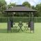 Belvédère avec toit anthracite 300x300x270 cm acierVous souhaitez profiter d'un moment de détente agréable avec votre famille et vos amis par une chaude journée d'été ou un jour de pluie ? Ce belvédère tendance est exactement ce qu'il vous faut ! Cadre en acier : l'acier est un matériau exceptionnellement dur et résistant. Il offre robustesse et stabilité. Espace spacieux : ce belvédère de jardin est suffisamment spacieux pour réunir votre famille et vos amis à l'intérieur sans vous sentir à l'étroit.Toit à deux niveaux : le toit à double étage avec revêtement PA est résistant à l'eau et assure une excellente circulation de l'air pour garantir la stabilité en cas de vent.Larges applications : cette tonnelle de fête est parfaite pour les réunions de famille, les pique-niques, les fêtes, les mariages, etc. et ajoute une touche d'élégance à votre jardin. Bon à savoir :Pour faciliter au maximum le montage, chaque produit est livré avec des instructions.