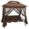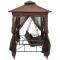Belvédère convertible en balancelle CaféCe belvédère à balancelle élégant et spacieux peut accueillir confortablement deux personnes et offre de l'ombre pour vous abriter du soleil grâce à son grand auvent. Grâce aux rideaux équipés de fermetures à boucles et crochets, vous pouvez facilement fermer les quatre côtés pour créer une zone fermée. Le filet fermé est idéal pour empêcher les insectes volants d'y entrer et vous offrir un refuge privé. Le siège peut être converti en un lit. Deux oreillers rectangulaires et deux oreillers cylindriques sont inclus pour plus de confort. Le cadre en acier durable a reçu une finition enduite de poudre résistante à la corrosion. Les housses de coussin en polyester imperméables sont amovibles pour un nettoyage facile. L'assemblage est également très facile. Maximum 110 kg par siège. Soyez conscient du risque de feux ouverts et d'autres sources de forte chaleur à proximité du produit.