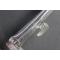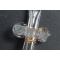Bénitier en verre pastillé transparent incolore soufflé. Les branches sont à décor de pastilles quadrillées. France, Provence-Côte d'Azur, fin du XIXe siècle Le pastillage consiste à déposer à chaud sur des objets partiellement refroidis des ornements en verre (médaillons, fruits, coquillage, etc.), moulés à la pince plate. Ce procédé connu dans l'Antiquité gallo-romaine, se répandit dans toute la France. En France, on rencontre des pastillages représentant des fleurs de lys souvent émaillés d'or, des fruits, parfois des visages humains. bon état (sauf un petit manque(voir photo)