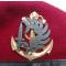 Insigne métallique présent (ancre, aile et glaive – insigne des Commandos Marine français, dit "béret vert" mais porté également en rouge dans certaines unités de tradition).