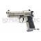 Le Beretta M92FS Umarex est fabriqué dans un zamak de qualité (alliage de zinc et d'aluminium), ce qui lui offre une solidité remarquable et un poids très réaliste. Il est livré dans une mallette de protection en plastique garnie de mousse. Les lignes extérieures du pistolet sont très fidèles au modèle d'origine, avec tous les détails présents, y compris la taille, la forme et les marquages, grâce à la licence d'exploitation Beretta. Le pistolet a reçu plusieurs finitions, noirs, nickels, avec des plaquettes en plastique noir quadrillé ou dorées avec les plaquettes bois et le médaillon Beretta Dorée.