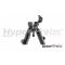 - en appuyant sur le bouton, une demi-cique s'ouvre. Posez le canon de votre carabine à l'intérieur et refermez la demi-coque, votre bipied est installé