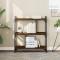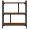 Bibliothèque 3 niveaux chêne brun 76x32x88 cm bois d'ingénierieCette bibliothèque offre une solution idéale pour organiser vos livres et sera un supplément décoratif mais pratique à votre décoration intérieure. Matériau durable : le bois d'ingénierie est d'une qualité exceptionnelle avec une surface lisse et présente également résistance, stabilité et résistance à l'humidité. Fabriquée en bois d'ingénierie, l'étagère à livres est facile à nettoyer.Beaucoup d'espace de rangement : l'étagère à livres offre un grand espace de rangement pour garder vos magazines, livres, objets décoratifs et autres objets indispensables au quotidien bien organisés et à portée de main.Pieds réglables : quatre pieds réglables avec des bouchons en plastique maintiennent l'étagère à livres en équilibre sur un sol inégal et augmentent sa stabilité.Cadre en métal : le cadre en métal ajoute un style industriel à votre intérieur tout en assurant la durabilité et la stabilité. Attention :Pour éviter qu'il ne soit renversé, ce produit doit être utilisé avec le dispositif de fixation au mur fourni.