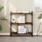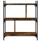 Bibliothèque 3 niveaux chêne fumé 76x32x88 cm bois d'ingénierieCette bibliothèque offre une solution idéale pour organiser vos livres et sera un supplément décoratif mais pratique à votre décoration intérieure. Matériau durable : le bois d'ingénierie est d'une qualité exceptionnelle avec une surface lisse et présente également résistance, stabilité et résistance à l'humidité. Fabriquée en bois d'ingénierie, l'étagère à livres est facile à nettoyer.Beaucoup d'espace de rangement : l'étagère à livres offre un grand espace de rangement pour garder vos magazines, livres, objets décoratifs et autres objets indispensables au quotidien bien organisés et à portée de main.Pieds réglables : quatre pieds réglables avec des bouchons en plastique maintiennent l'étagère à livres en équilibre sur un sol inégal et augmentent sa stabilité.Cadre en métal : le cadre en métal ajoute un style industriel à votre intérieur tout en assurant la durabilité et la stabilité. Attention :Pour éviter qu'il ne soit renversé, ce produit doit être utilisé avec le dispositif de fixation au mur fourni.