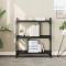 Bibliothèque à 3 niveaux noir 76x32x88 cm bois d'ingénierieCette bibliothèque offre une solution idéale pour organiser vos livres et sera un supplément décoratif mais pratique à votre décoration intérieure. Matériau durable : le bois d'ingénierie est d'une qualité exceptionnelle avec une surface lisse et présente également résistance, stabilité et résistance à l'humidité. Fabriquée en bois d'ingénierie, l'étagère à livres est facile à nettoyer.Beaucoup d'espace de rangement : l'étagère à livres offre un grand espace de rangement pour garder vos magazines, livres, objets décoratifs et autres objets indispensables au quotidien bien organisés et à portée de main.Pieds réglables : quatre pieds réglables avec des bouchons en plastique maintiennent l'étagère à livres en équilibre sur un sol inégal et augmentent sa stabilité.Cadre en métal : le cadre en métal ajoute un style industriel à votre intérieur tout en assurant la durabilité et la stabilité. Attention :Pour éviter qu'il ne soit renversé, ce produit doit être utilisé avec le dispositif de fixation au mur fourni.