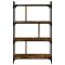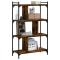Bibliothèque 4 niveaux chêne fumé 76x32x123cm bois d'ingénierieCette bibliothèque offre une solution idéale pour organiser vos livres et sera un supplément décoratif mais pratique à votre décoration intérieure. Matériau durable : le bois d'ingénierie est d'une qualité exceptionnelle avec une surface lisse et présente également résistance, stabilité et résistance à l'humidité. Fabriquée en bois d'ingénierie, l'étagère à livres est facile à nettoyer.Beaucoup d'espace de rangement : l'étagère à livres offre un grand espace de rangement pour garder vos magazines, livres, objets décoratifs et autres objets indispensables au quotidien bien organisés et à portée de main.Pieds réglables : quatre pieds réglables avec des bouchons en plastique maintiennent l'étagère à livres en équilibre sur un sol inégal et augmentent sa stabilité.Cadre en métal : le cadre en métal ajoute un style industriel à votre intérieur tout en assurant la durabilité et la stabilité. Attention :Pour éviter qu'il ne soit renversé, ce produit doit être utilisé avec le dispositif de fixation au mur fourni.