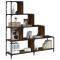 Bibliothèque à 4 niveaux chêne fumé bois d'ingénierieCette bibliothèque à 4 niveaux est une aide précieuse pour l'organisation du désordre et un supplément intemporel à votre décoration intérieure. Construction robuste : l'acier revêtu de poudre et le bois d'ingénierie garantissent une construction robuste et offrent un support solide à vos articles.Design peu encombrant : la bibliothèque utilise de manière optimale l'espace vertical et occupe peu d'espace au sol, ce qui convient particulièrement aux petites pièces.Grand espace de rangement : l'étagère à livres est dotée de 4 niveaux, offrant un grand espace de rangement pour stocker et exposer vos livres, magazines, objets de décoration, cadres photo, souvenirs de vacances et trophées tout en améliorant votre espace de vie.Nombreuses applications : l'étagère de présentation peut également être utilisée comme séparateur de pièce, s'adaptant facilement à tous les styles de pièces. Vous pouvez la placer dans le salon pour y exposer des décorations, dans le bureau pour ranger des livres et des documents, dans la chambre à coucher pour stocker des objets du quotidien et dans la cave pour entreposer divers articles. Attention :Pour éviter qu'il ne soit renversé, ce produit doit être utilisé avec le dispositif de fixation au mur fourni.