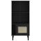 Bibliothèque SENJA aspect de rotin noir bois massif de pinCette bibliothèque en bois offre une solution idéale pour organiser vos livres et sera un supplément décoratif mais pratique à votre décoration intérieure. Bois de pin massif : le bois de pin massif est un matériau naturel magnifique. Le bois de pin a un grain droit et les noeuds donnent au matériau son aspect caractéristique et rustique.Vernis UV : le vernis UV est un type spécial de vernis qui est fini à l'aide d'un séchoir à ultraviolets. Il crée une finition plus vive, plus luxueuse et plus tactile par rapport aux vernis non UV.Beaucoup d'espace de rangement : la bibliothèque avec porte offre un grand espace de rangement pour garder vos magazines, livres, objets décoratifs et autres objets indispensables au quotidien bien organisés et à portée de main.Surface aspect rotin : la surface de la porte de l'étagère à livres est fabriquée à la main en résine tressée, un mélange bicolore de modernité du milieu du siècle et de bohème qui ajoute une touche à la fois douillette et élégante à votre espace. Attention :Pour éviter qu'il ne soit renversé, ce produit doit être utilisé avec le dispositif de fixation au mur fourni.